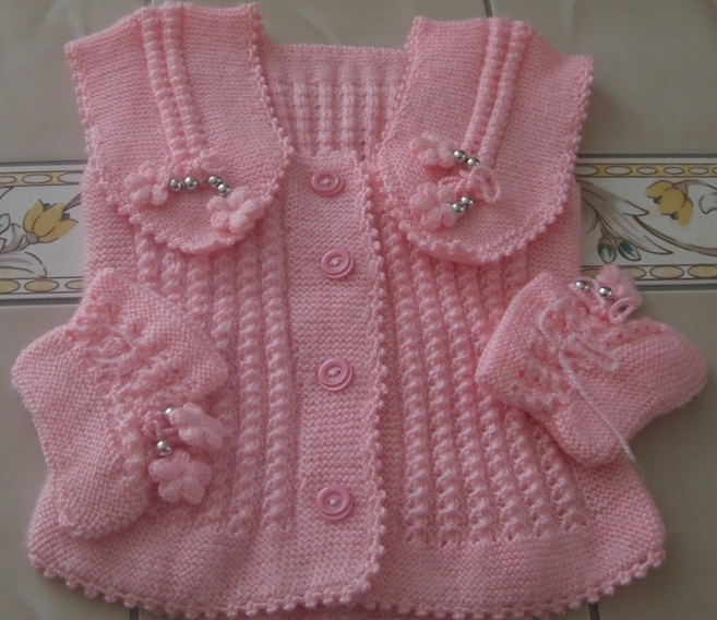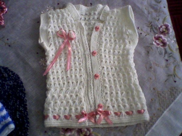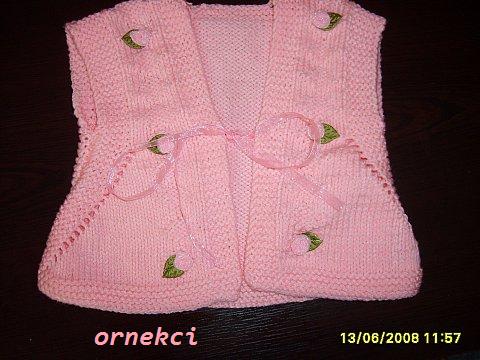 Pembe-Beyaz Bebek Yeleği Modelleri