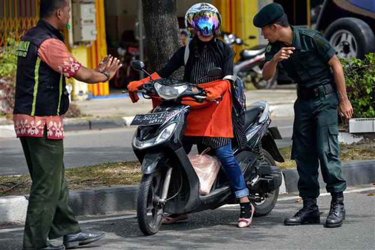 Endonezya’nın Açe eyaletinde şeriat polisi, şeri hükümlere aykırı olduğu gerekçesiyle ‘dar pantolon’ kontrolü yaptı. Trafikte dar pantolon giymiş kadınlar durduruldu.