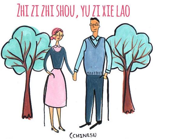 6. Zhi Zi Zhi Shou, Yu Zi Xie Lao (Çince) : El ele tutuşmak ve birlikte yaşlanmak.