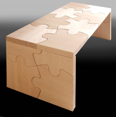 Dekorasyonunda farklılık isteyenlere puzzle tasarımlı ahşap sehpa modeli.