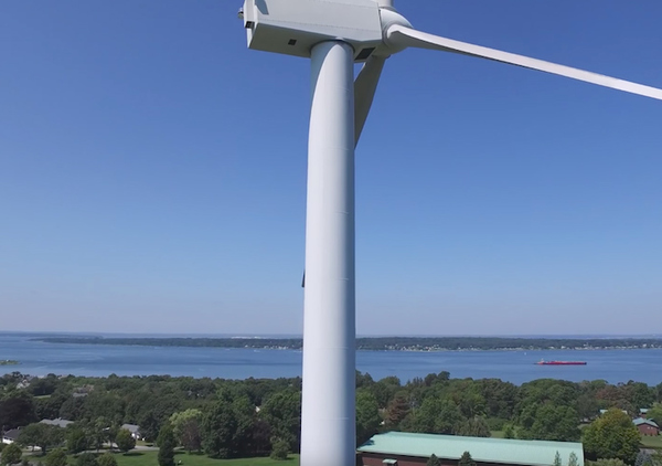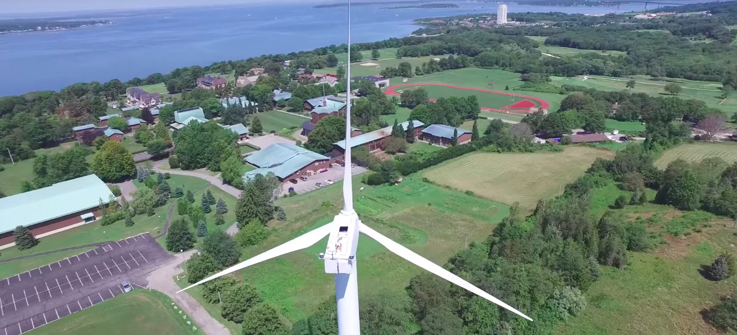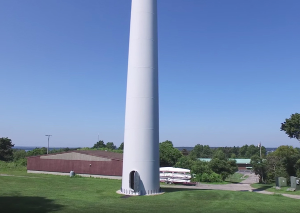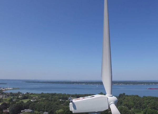 Rhode Island’taki bir kişi de rüzgâr türbinine bir de drone ile yakından bakmak istedi.
