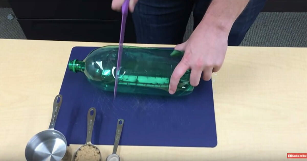 1- Pet şişenin üst kısmını bıçakla kesin.