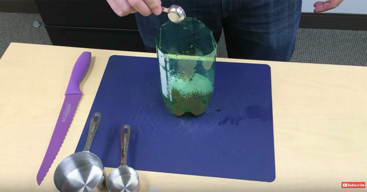 2- Su, esmer şeker ve kuru mayayı plastik şişenin içine dökün.