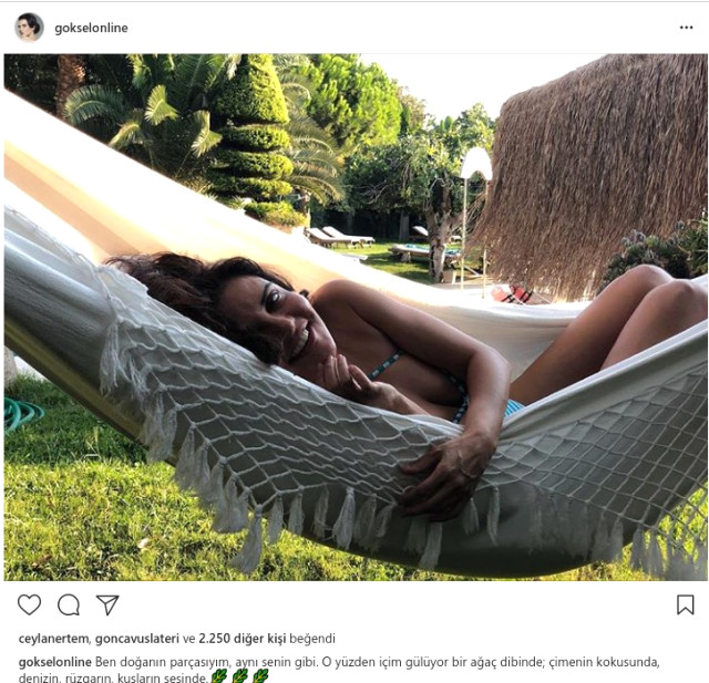 Şarkılarıyla büyük bir kitleye hitap eden Göksel’den tatil paylaşımları gelmeye devam ediyor. Sempatik şarkıcı hem şarkılarıyla hem de paylaşımlarıyla büyük beğeni topluyor. Göksel’in son paylaşımı ise sınırları zorlar nitelikte. Hamakta bikinili poz veren Göksel’in göğüs dekoltesi takipçilerin gözünden kaçmadı.