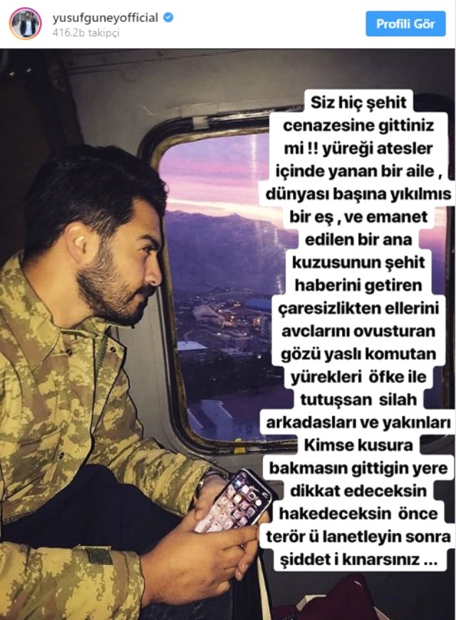 Instagram hesabı üzerinden kendi fotoğrafını paylaşarak açıklama yapan Güney şu ifadeleri kullandı: