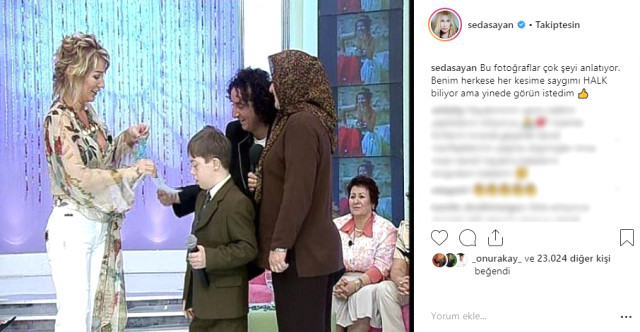 Takipçi Sayan’ın sorusuna, “Kaç yaşında kadınlar bana sandalye verecekler diye saçlarını açtılar. Benim için travma oldu. Sizden mi çalıştığınız televizyondan mı siz açıklayacaksınız” dedi. Seda Sayan, bugün de sosyal medyadan bir fotoğraf paylaşarak, “Bu fotoğraf çok şeyi anlatıyor. Benim herkese her kesime saygımı halk biliyor ama yinede görün istedim. Fazla söze gerek yok” dedi.