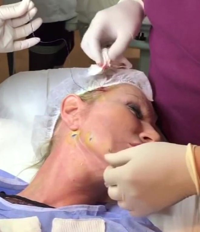 56 yaşındaki ünlü şarkıcı Seda Sayan, 10 yaş birden gençleştiren ‘Fransız Askısı’ isimli yöntem için saç diplerinden çene altına kadar ikişer adet cilt altı ipi yerleştirtti.