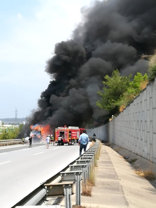 Edinilen bilgiye göre, İskenderun-Payas otobanı Sarıseki mevkiinde seyir halindeki 31 R 124 plakalı TIR’ın dorsesi henüz bilinmeyen bir nedenle alev aldı. Alevlerin kısa sürede büyüdüğü yangında sürücü Hüseyin D., TIR’ı kenara çekerek araçtan uzaklaştı.
