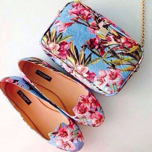 Çiçek desenli ayakkabı çanta modelleri