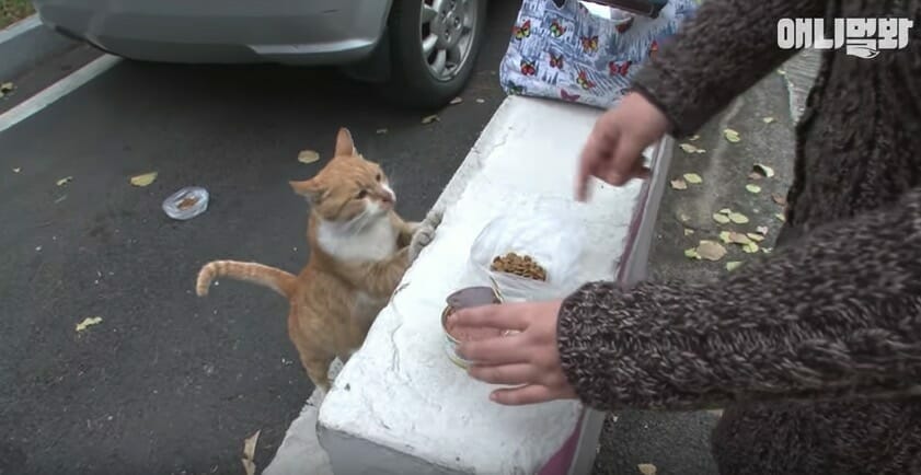 Dongsuk ismindeki sokak kedisini uzun süredir bir hayvansever besliyordu. Kadın sadece ona değil diğer sokak kedilerine de yemek veriyordu.
