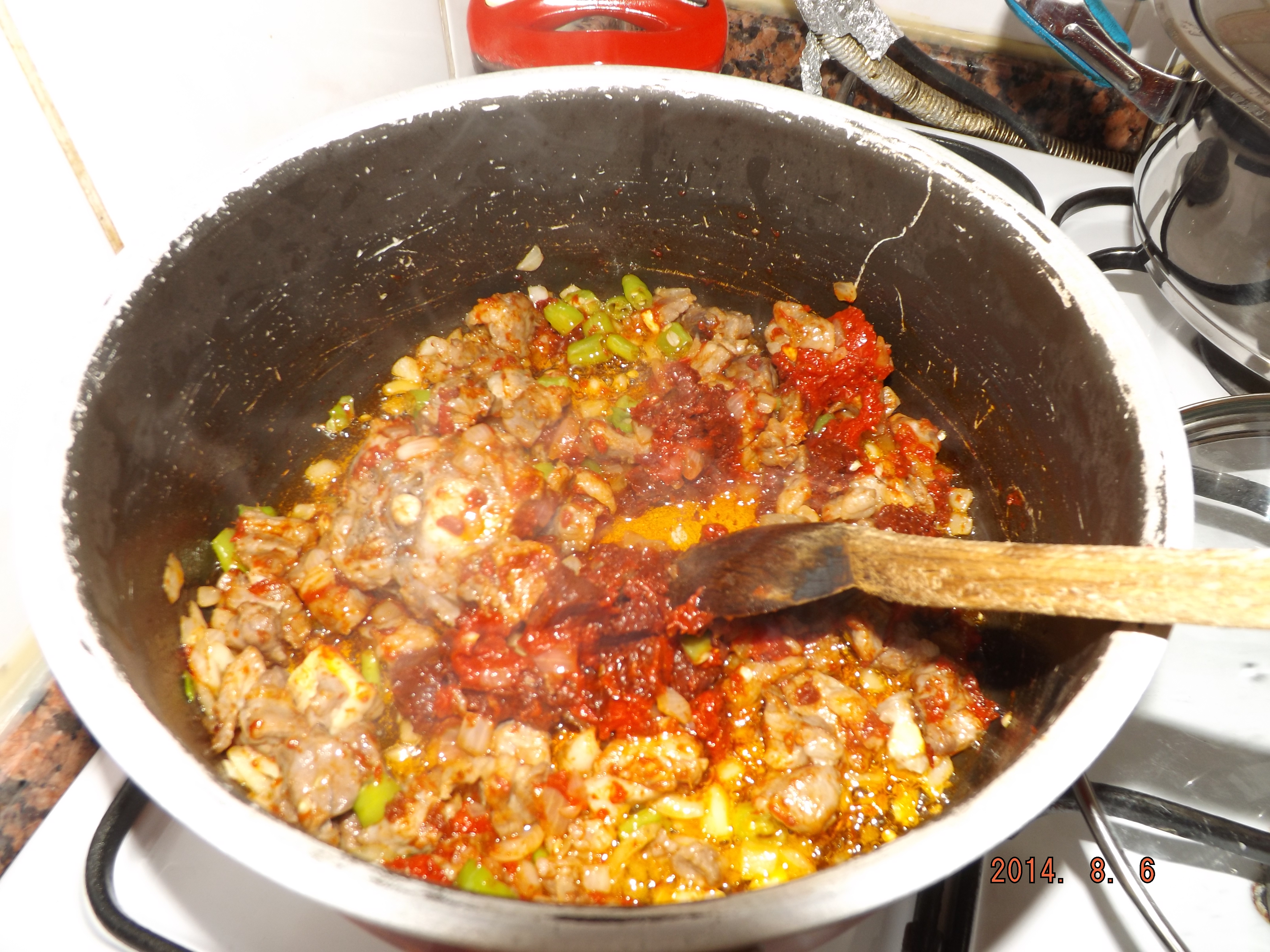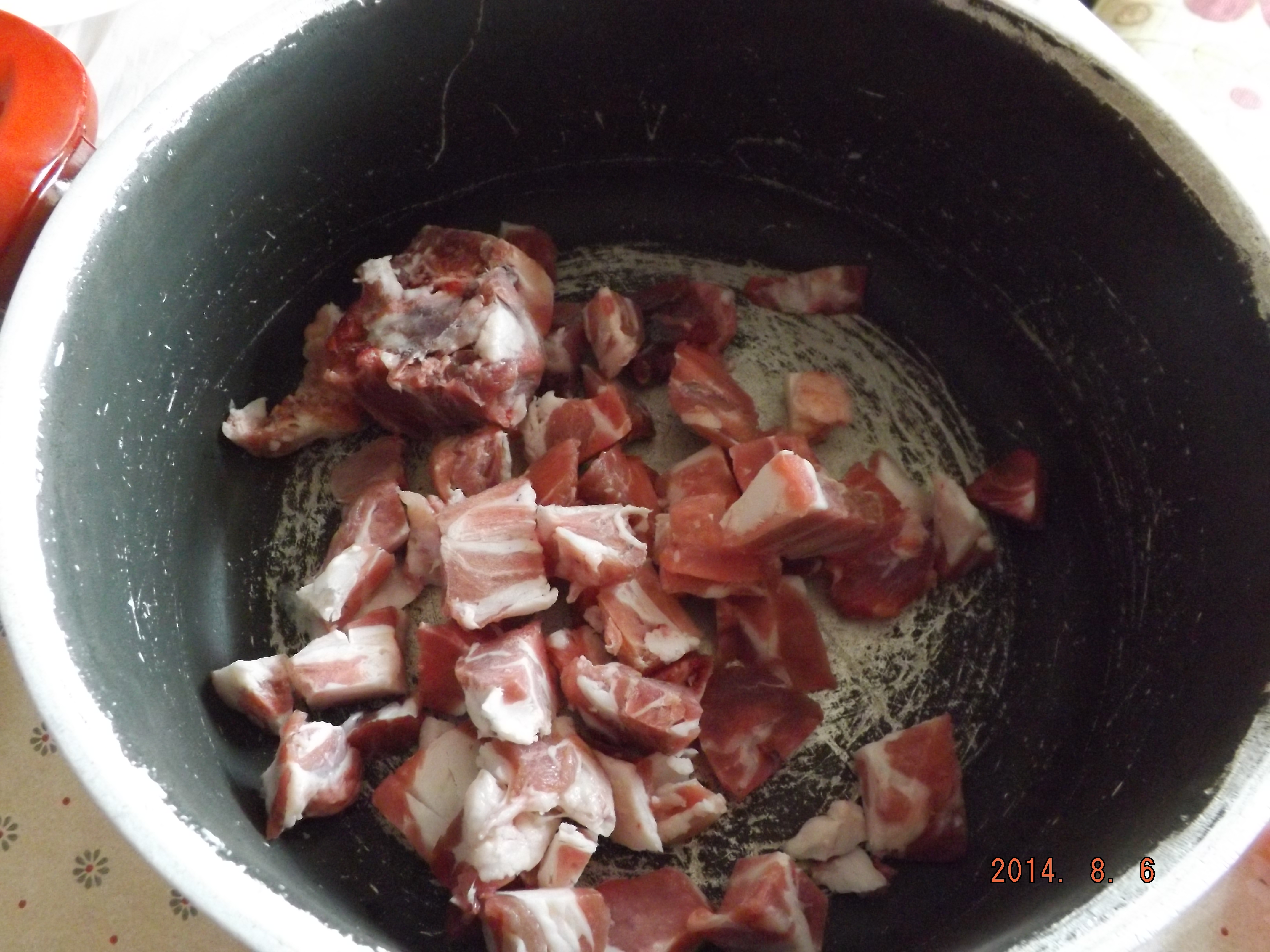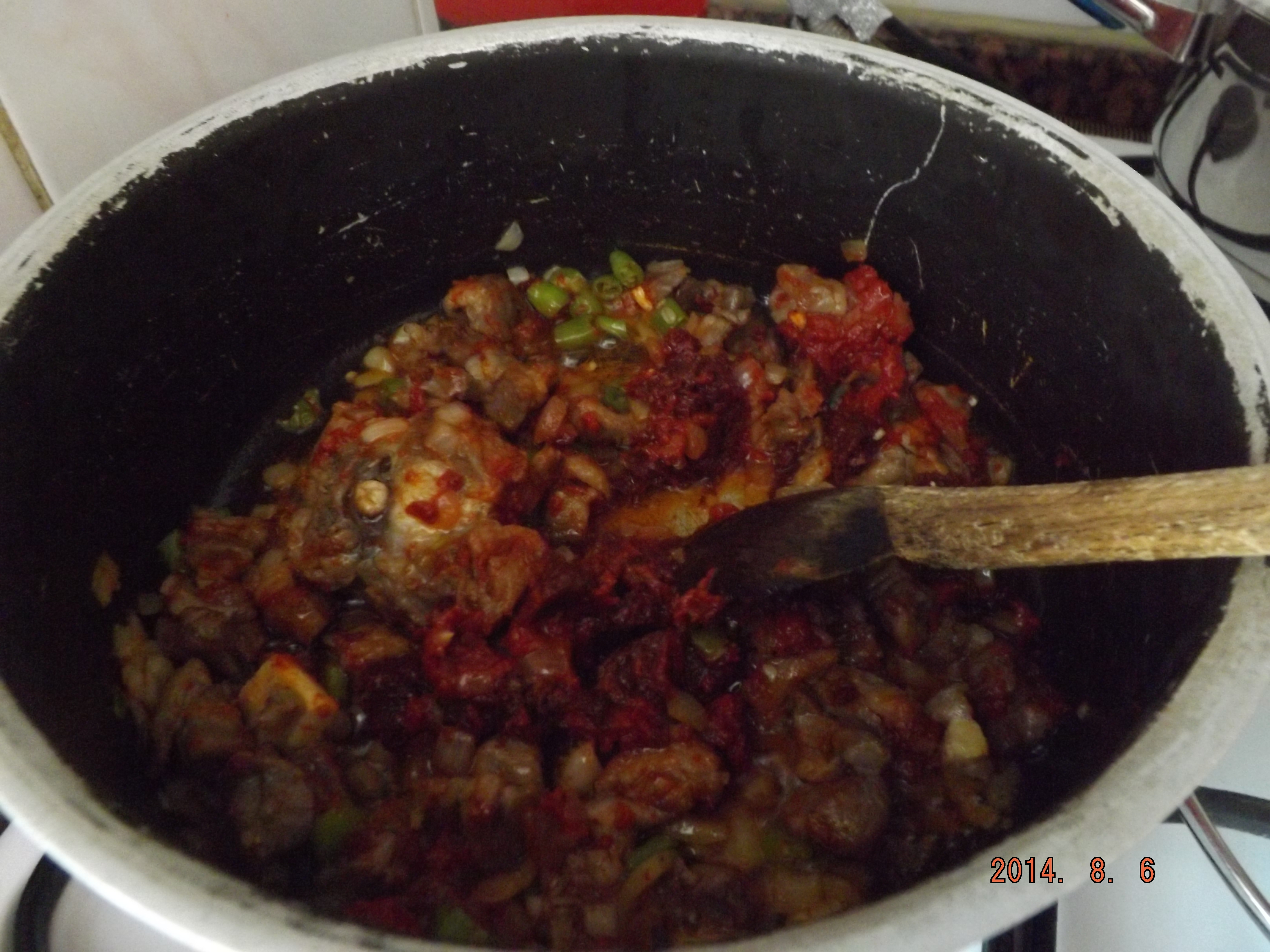 Öncelikle etlerimizi kuşbaşı şeklinde doğruyoruz.(şekildeki gibi) Kuşbaşı doğranan etleri tenceremize alalım ve kendi buharında pişmesini bekleyelim. Tencerenin yanmaması için bir yarım çay bardağı sıvıyağı ekliyoruz. Bir müddet daha piştikten sonra, patateslerimizi soyalım ve üçgen şeklinde doğrayalım. Biberlerimizi ve soğanlarımızı küp küp doğrayalım. Doğradıktan sonra etlerimizin içine ekleyelim ve karıştıralım. Kavrulduktan sonra birer kaşık salçalarımızı ekleyelim ve tekrar karıştıralım. Patatesleri tencerede kavrulan yemeğin içerisine alalım. Beraberinde tuz, karabiber ekleyelim ve karıştıralım. Üstünü geçecek kadar su ekleyelim.(suyun miktarını daha iyi öğrenmek için galerideki fotoğraflara bakınız.) Tencerenin kapağını kapatalım ve kaynamaya bırakalım. Kaynadıktan sonra ocaktan alalım ve dinlendirelim.