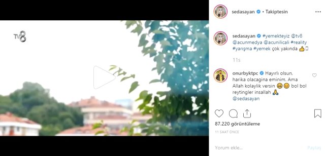 TV8 ekranlarında yayınlanan ve büyük bir ilgiyle takip edilen Yemekteyiz’i gelecek sezon Onur Büyüktopçu yerine Seda Sayan sunacak. Sayan, dün Instagram hesabından yarışmanın yeni sezon tanıtım videosunu yayınladı. Sayan’ın paylaşımına bir yorumda Büyüktopçu’dan geldi.
