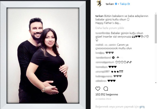Ünlü şarkıcı Tarkan Babalar gününde 7,5 aylık hamile eşi Pınar Tevetoğlu ile birlikte çektirdiği fotoğrafı sosyal medya hesabından paylaştı. Megastarın “Bütün babaların ve baba adaylarının babalar günü kutlu olsun Happy Father’s day… ” notuyla Babalar Günü’nü kutladığı fotoğraf kısa sürede binlerce beğeni aldı.
