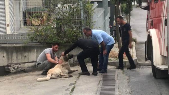 Temizlik aracı varillerin üzerine düştü! Kimyasal maddeden etkilen köpek için mahalleli seferber oldu