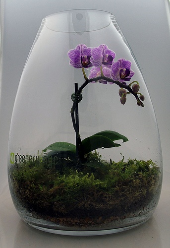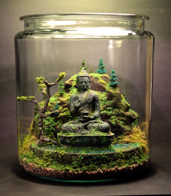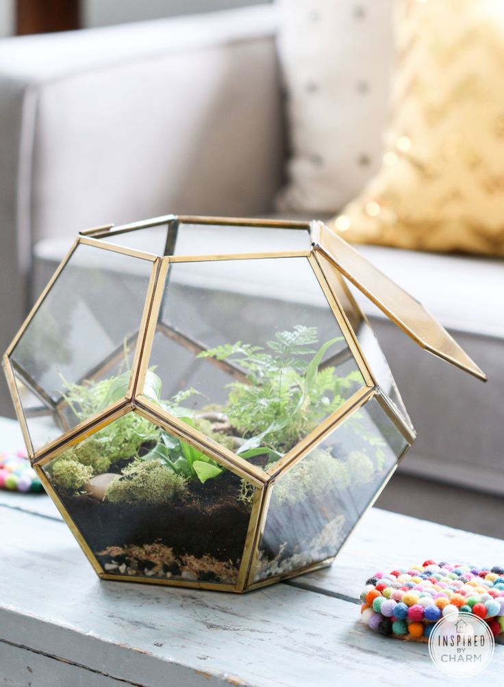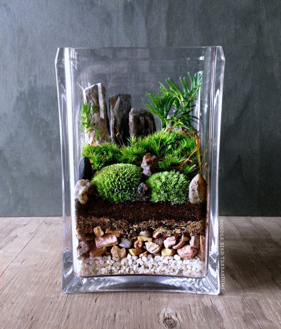 Terrarium dediğimiz zaman evimizde ofisimizde minyatür bahçeler yaratmak gibi bir şey düşünebiliriz. Bunun içi fanus, bitkiler, çeşitli objeler gerekmektedir. Terrarium yapımına önce bitkimizi seçerek fanusu seçerek bunu nereye yerleştireceğimiz düşünerek. Kısaca bu 3 soruyu düşünerek başlayabiliriz. İlk aşamada fanusu alın ve içinde kullanacağınız dekorasyon objelerini yani alt kısmına yerleştireceğimiz kısmı oluşturacağız. Terrarium yaparken camın temiz olmasına özen göstermeliyiz, aynı zamanda en altta kullanacağımız toz dekorasyon kısmı oluştursa da dranej kısmını da katkıda bulunuyor. Bunu yaparken camın ıslak olmamasına dikkat etmelisiniz, eğer ıslak olursa yapışır toz. Kullandığımız tozun özelliğide üst üste geldikleri zaman birbirlerine içinde karışmaması ve güzel bir görüntü sağlaması. Mesela en koyu olan tozu en alta dökelim, bunun üzerine diğer çeşitli renkte tozlar dökelim. Terrarium temel kısmını tozlarla oluşturalım, üzerine drenaj yani çakıl tabakası oluşturmalıyız çakıl tabası yapmak için estetik bir görüntü vermek için renkli çakıl taşlarını da kullanabiliriz. Kenarlara deniz kabukları ile şekiller yapabilirsiniz, burada sizin yaratıçılığınız devreye girebilir, büyük deniz taşları da kullanabilirsiniz kenarları bu şekilde dekoratif objeleri kullanmanız aslında çok işinize yarayacaktır. Çünkü içine toprak koyacağımız için bu arada güzel bir yuva hazırlıyoruz, böylece dışarıdan toprağı görmeyeceğiz. Artık drenaj kısmına geçebiliriz çakıl taşları ile o kısmı dolduralım Kuru bir Terrarium çalışması yapacağız az su isteyen bir bitki kullanacağız. Onun için drenaj tabakası ve taşlı kumlu ortam hazırlıyoruz. Elimizle taşların arasında bir oyuk açalım, bitkiyi dikebileceğimiz bir oyuk olmalı açtığımız oyuğa çok dikkatli bir biçimde kaktüs toprağı koyalım, toprakğı koyduktan sonra yine bitkiğimizi ekeceğimiz oyuğu belirginleştirelim daha sonra bitkimizi oyuğa yerleştirelim ve toprakla kenarlarını besleyelim. Dilerseniz tam yanına başka bir bitki daha dikebiliriz, bitki dikme işini bitirdikten sonra tekrar çakıl taşı koyalım ve topraklı kısmı estetik bir şekilde kapatalım. Bu aşamada doğal deniz taşları da kullanabilirsiniz. Terrarium bitirdikten sonra üzerine can suyunu bir fıfıslı bir şeyle su serpelim, cam fanusumuzun kenarlarına gelen suları silelim. Salonumuzun en güzel yerine koyalım.