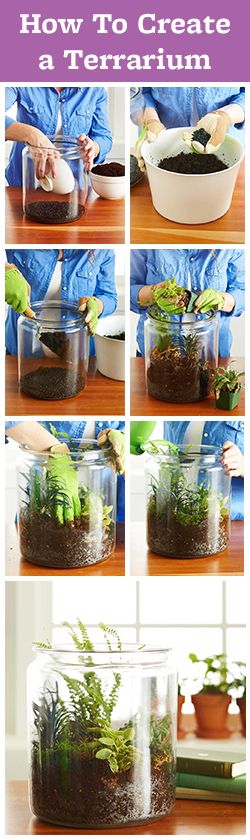 Terrarium dediğimiz zaman evimizde ofisimizde minyatür bahçeler yaratmak gibi bir şey düşünebiliriz. Bunun içi fanus, bitkiler, çeşitli objeler gerekmektedir. Terrarium yapımına önce bitkimizi seçerek fanusu seçerek bunu nereye yerleştireceğimiz düşünerek. Kısaca bu 3 soruyu düşünerek başlayabiliriz. İlk aşamada fanusu alın ve içinde kullanacağınız dekorasyon objelerini yani alt kısmına yerleştireceğimiz kısmı oluşturacağız. Terrarium yaparken camın temiz olmasına özen göstermeliyiz, aynı zamanda en altta kullanacağımız toz dekorasyon kısmı oluştursa da dranej kısmını da katkıda bulunuyor. Bunu yaparken camın ıslak olmamasına dikkat etmelisiniz, eğer ıslak olursa yapışır toz. Kullandığımız tozun özelliğide üst üste geldikleri zaman birbirlerine içinde karışmaması ve güzel bir görüntü sağlaması. Mesela en koyu olan tozu en alta dökelim, bunun üzerine diğer çeşitli renkte tozlar dökelim. Terrarium temel kısmını tozlarla oluşturalım, üzerine drenaj yani çakıl tabakası oluşturmalıyız çakıl tabası yapmak için estetik bir görüntü vermek için renkli çakıl taşlarını da kullanabiliriz. Kenarlara deniz kabukları ile şekiller yapabilirsiniz, burada sizin yaratıçılığınız devreye girebilir, büyük deniz taşları da kullanabilirsiniz kenarları bu şekilde dekoratif objeleri kullanmanız aslında çok işinize yarayacaktır. Çünkü içine toprak koyacağımız için bu arada güzel bir yuva hazırlıyoruz, böylece dışarıdan toprağı görmeyeceğiz. Artık drenaj kısmına geçebiliriz çakıl taşları ile o kısmı dolduralım Kuru bir Terrarium çalışması yapacağız az su isteyen bir bitki kullanacağız. Onun için drenaj tabakası ve taşlı kumlu ortam hazırlıyoruz. Elimizle taşların arasında bir oyuk açalım, bitkiyi dikebileceğimiz bir oyuk olmalı açtığımız oyuğa çok dikkatli bir biçimde kaktüs toprağı koyalım, toprakğı koyduktan sonra yine bitkiğimizi ekeceğimiz oyuğu belirginleştirelim daha sonra bitkimizi oyuğa yerleştirelim ve toprakla kenarlarını besleyelim. Dilerseniz tam yanına başka bir bitki daha dikebiliriz, bitki dikme işini bitirdikten sonra tekrar çakıl taşı koyalım ve topraklı kısmı estetik bir şekilde kapatalım. Bu aşamada doğal deniz taşları da kullanabilirsiniz. Terrarium bitirdikten sonra üzerine can suyunu bir fıfıslı bir şeyle su serpelim, cam fanusumuzun kenarlarına gelen suları silelim. Salonumuzun en güzel yerine koyalım.