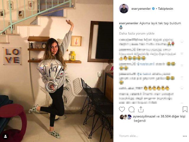 Eser Yenenler ise bu yorumların altında kalmayıp sevgilisine tektaş şeklinde balon aldı. Bu anları Instagram hesabından paylaşan Yenenler, “Aşkıma layık tektaşı buldum” dedi.