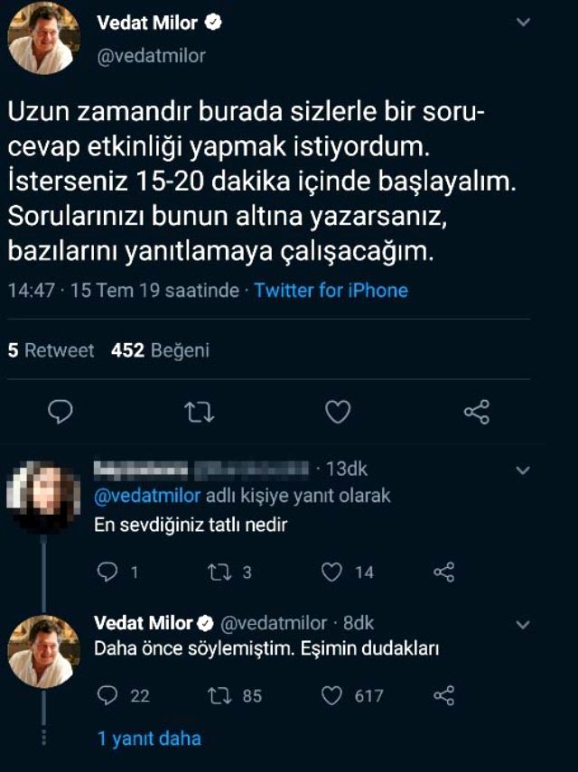 Milor, bugün Twitter hesabından “Uzun zamandır burada sizlerle bir soru-cevap etkinliği yapmak istiyordum. İsterseniz 15-20 dakika içinde başlayalım. Sorularınızı bunun altına yazarsanız, bazılarını yanıtlamaya çalışacağım.” diyerek takipçilerinden gelen soruları yanıtladı.