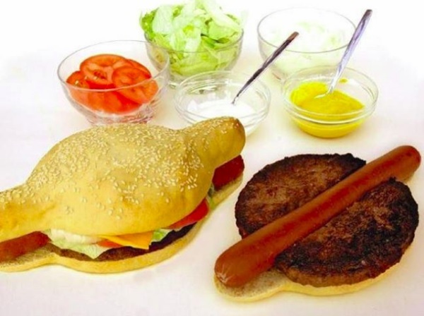 Mantığı ise gayet basit. Ekmeğin yarısında hamburger var yarısında da sosis. Ancak ekmek çok farklı bir görünüme sahip.