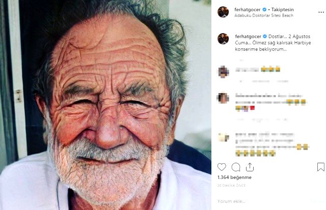Instagram’da hızla yayılan akıma dahil olan Ferhat Göçer, filtreli görüntüsüyle görenleri şaşkına uğrattı. Efektle bambaşka biri olan Göçer, o görüntüsünü “Dostlar… 2 Ağustos Cuma… Ölmez sağ kalırsak Harbiye konserime bekliyorum…” notuyla paylaştı.