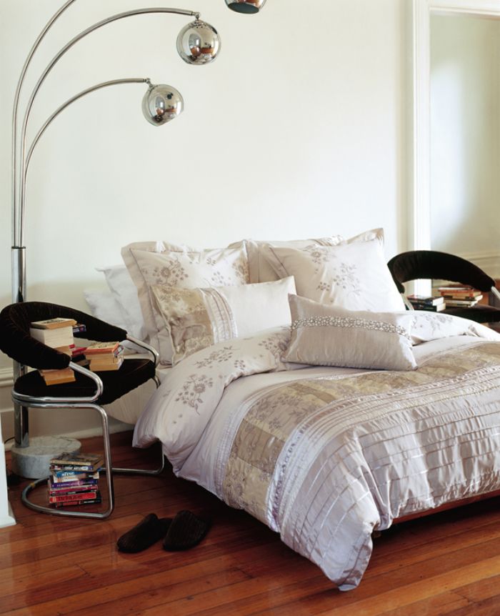Koyu renkli mobilyalarınızla rahatlıkla kullanabileceğiniz açık renkli nevresim takımı modeli.