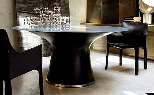 Siyah şık tasarımıyla dikkat çeken modern bir masa..