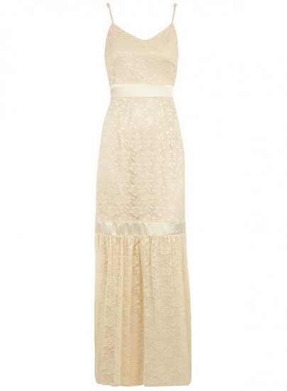 Geçtiğimiz sezonda ve yeni sezonda moda olan dantel maksi elbise çok hoş bir model. Yaz için uygun krem rengi bir elbise modeli