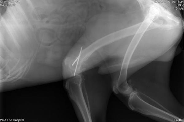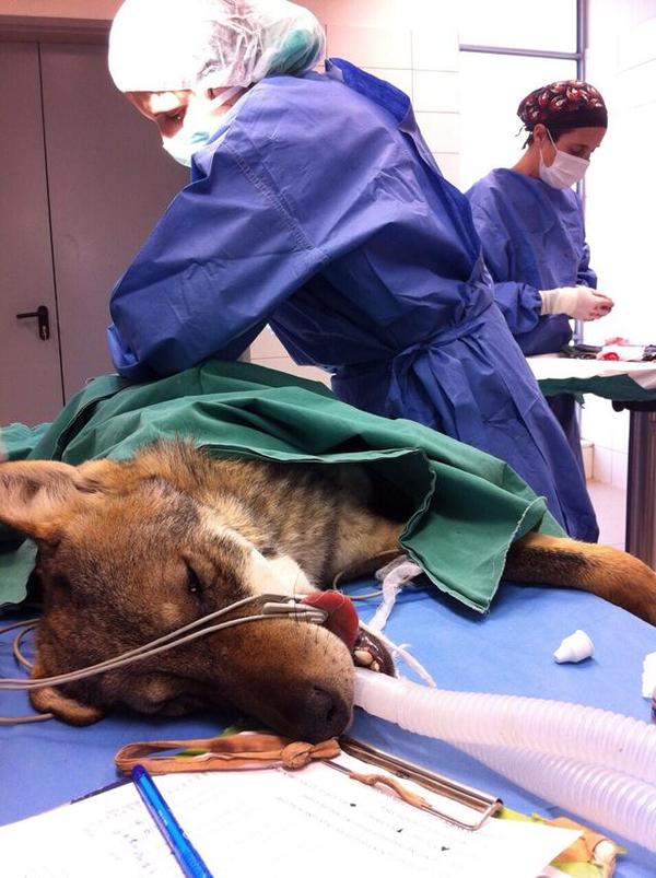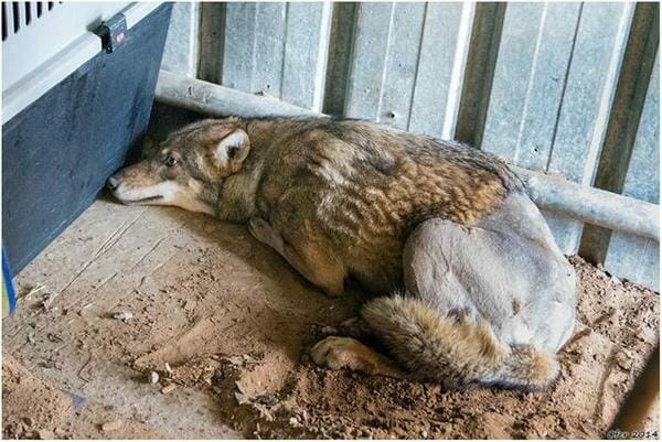Bacağı kırılan kurt zorlukla yolun kenarına kadar sürüklenmeyi başardı. Bu halde hayatta kalması imkansızdı. Neyse ki onu bir hayvansever farketti ve derhal veterinere götürdü.