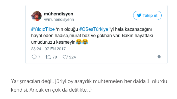 Sırf Yıldız Tilbe için programın her saniyesini gözünü kırpmadan binlerce insan var bu ülkede. Onun şarkılarıyla büyüyüp, onun sözlerine sigara yakanlar. Onun tepkilerine kahkaha atıp, çılgınlıklarında kendi hissettiklerini fark eden insanlarla dolu bu ülke.