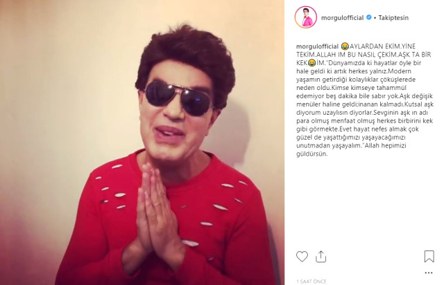 Yılmaz Morgül sosyal medya paylaşımına, “Dünyamızda ki hayatlar öyle bir hale geldi ki artık herkes yalnız.Modern yaşamın getirdiği kolaylıklar çöküşlerde neden oldu.Kimse kimseye tahammül edemiyor beş dakika bile sabır yok.Aşk değişik menüler haline geldi;inanan kalmadı.Kutsal aşk diyorum uzaylısın diyorlar.Sevginin aşk ın adı para olmuş menfaat olmuş herkes birbirini kek gibi görmekte. Evet hayat nefes almak çok güzel de yaşattığımızı yaşayacağımızı unutmadan yaşayalım.’ Allah hepimizi güldürsün.” notunu ekledi.