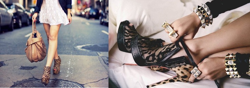 Leopar desenin farklı farklı modellerde ayakkabı tasarımlarını bulabilirsiniz.Bunlardan iki örneği yukarda görebilirsiniz.İster baştan aşağı leopar deseniyle süslenmiş bir ayakkabı seçersiniz ister leopar karışımlı dantelli ayakkabı modelini rahatlıkla kullanabilirsiniz.
