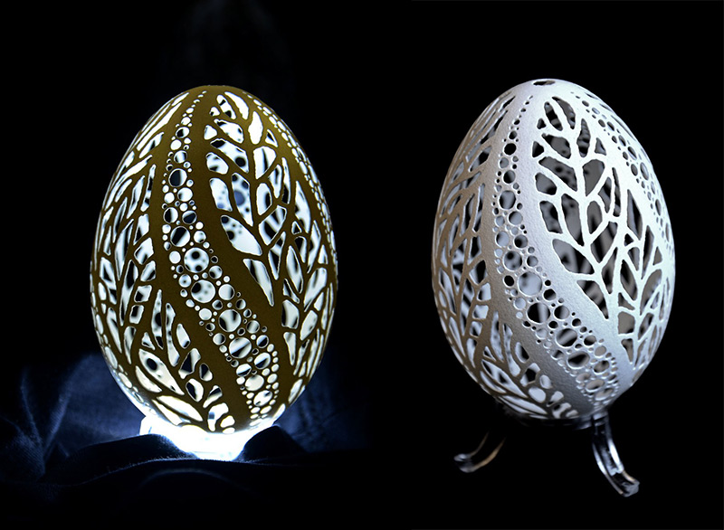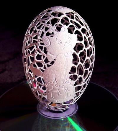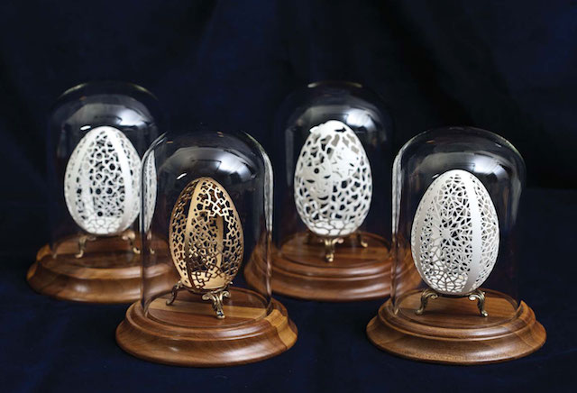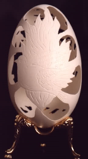 Yumurta oymacılığı sanatı bilindik bir el sanatı değil elbette. Washington’daki bir sanatçının işlemden geçirdiği yumurta kabukları Washington’daki sanat galerilerinde sergileniyor. Sanatçı Tina Kannapel gösterilen ilgiden bir hayli memnun. Tina Kannepel için dişçilerin kullandığı aletler ve zımparayla yumurta kabuğu oymak bir tutku. Tina Kannapel, ”Yumurta kabuğu kavisli olduğu için çok güçlü bir yapıya sahip. Bazılarını o kadar çok oydum ki, dantele benziyorlar adeta. Bu işin sırrı, dantelin farklı parçaları arasındaki bağı koparmamak. Böylece yumurta kabuğunun kırılması engelleniyor,” diyor. Yılda bin 600 yumurta kabuğu oyup şekillendiren ve satan Kannapel, ana malzemesini, döllenmemiş yumurtaların içini boşaltan kuş üreticilerinden alıyor: ”Devekuşu yumurtası çok sert, porselen gibi.” Kannapel kaz, sülün ve papağan yumurtalarını da kullanıyor: ”Bu benim desen dosyam.” Kannapel işe üzerinde desenin basılı olduğu kağıdı yumurta kabuğuna yapıştırarak başlıyor: ”Yumurta kabuğunun yüzeyini sabitlemek için kağıt kullanıyorum. Yumurta kabuğunu kağıdın üzerinden oyacaksanız desenin kağıtta olması işinizi kolaylaştırır.” Yumurta kabuklarının sert ve yumuşak noktaları var. Kullanılan kağıt, kırıntı oluşmasını engelliyor. Kannapel geometrik şekiller, hayvan figürleri ve portrelerden oluşan 300 farklı desenle çalışıyor. Desen ne olursa olsun kabuğu oymaya en zor noktadan başlamak gerekiyor. Böylece kabuk kırılırsa saatlerce verilen emek boşa gitmemiş oluyor.