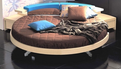 Hoş ve modern tasarıma sahip yuvarlak yatak örneği.